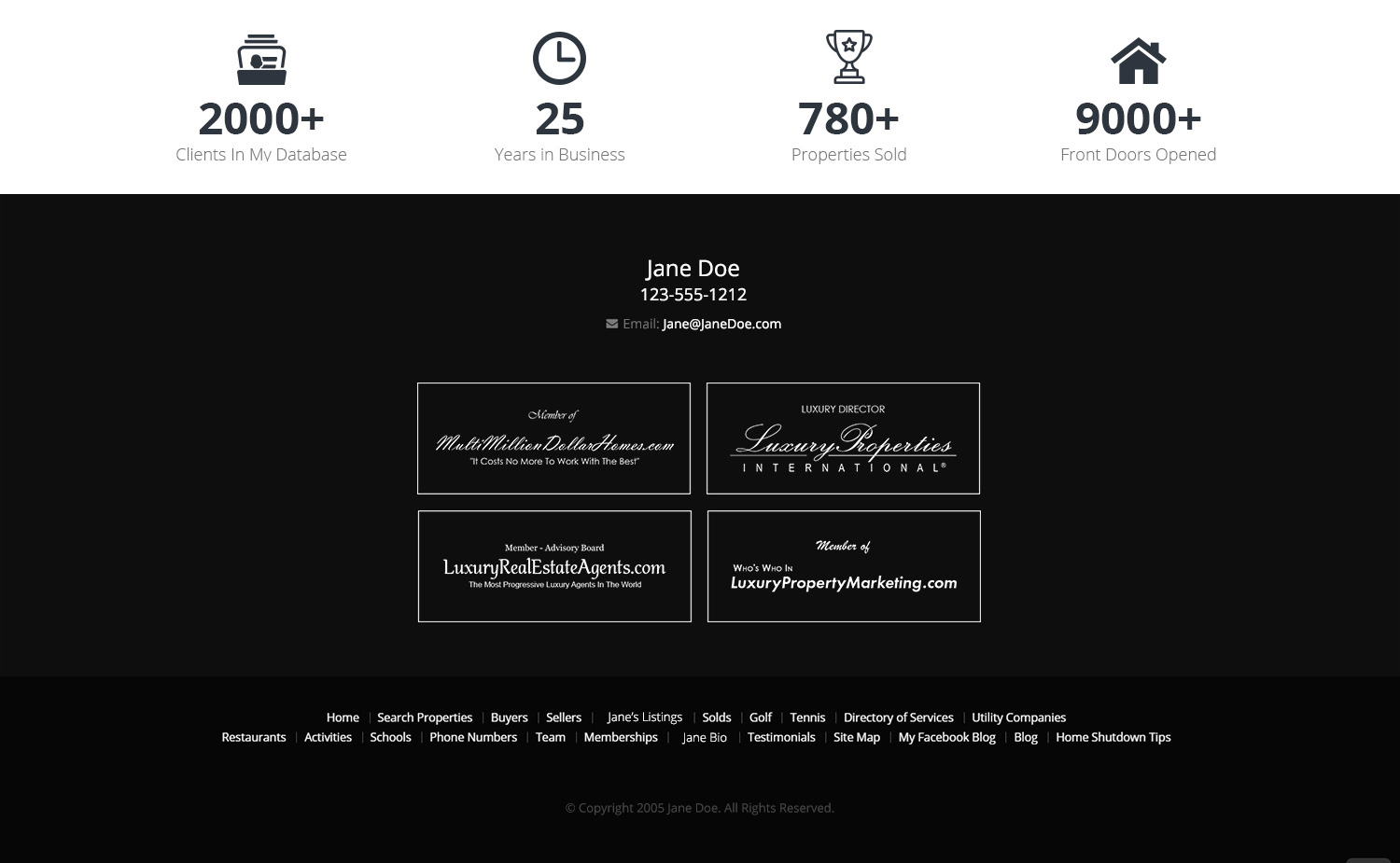 When partnering with Sotheby's, Christie's and other luxury sites your buyers and sellers are directed to a website with all of their competing agents. Not a good idea! With our sites you will never lose a lead over another agent because we will build a page just for you where buyers or sellers can click links that go directly to your I DX/MLS property listings.