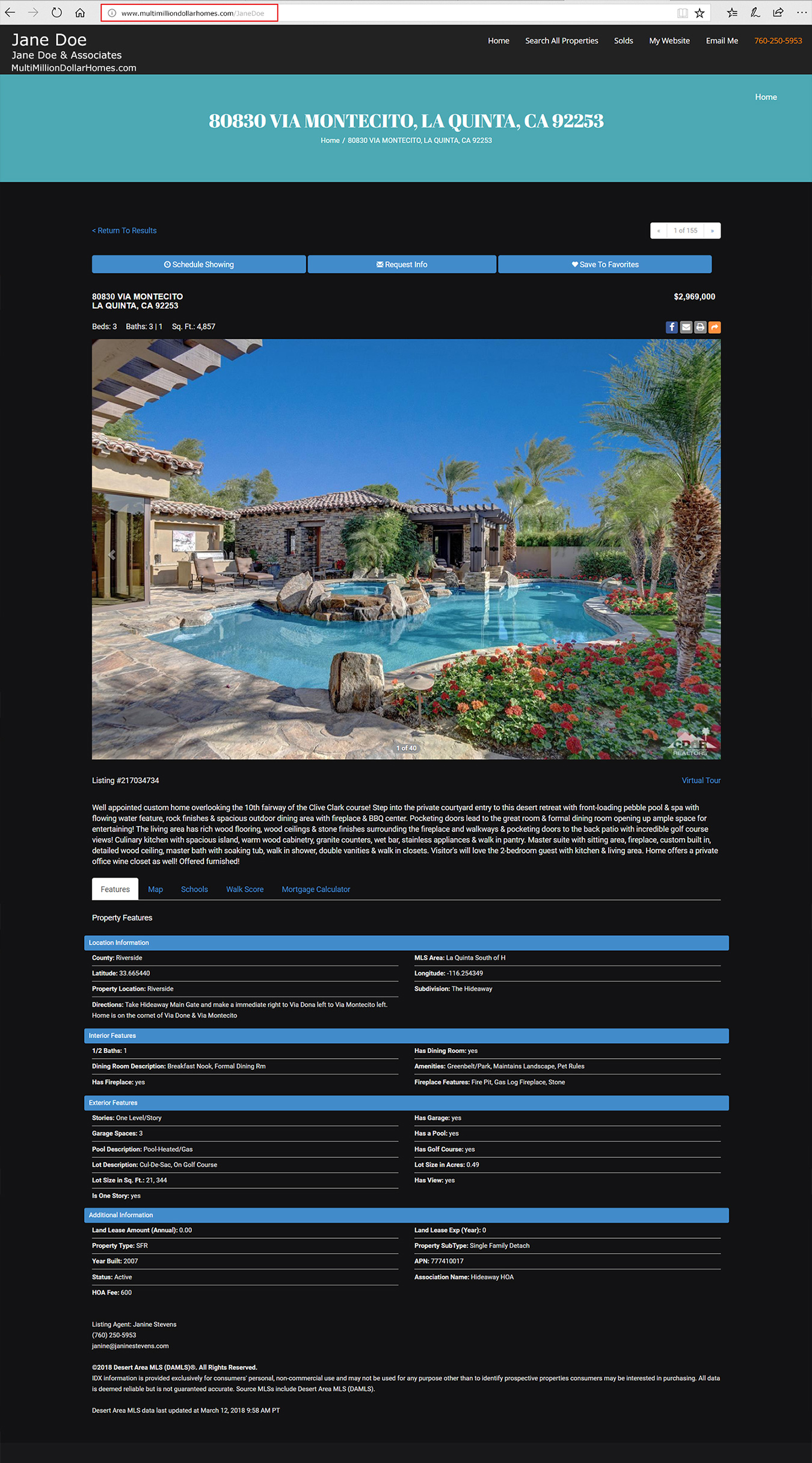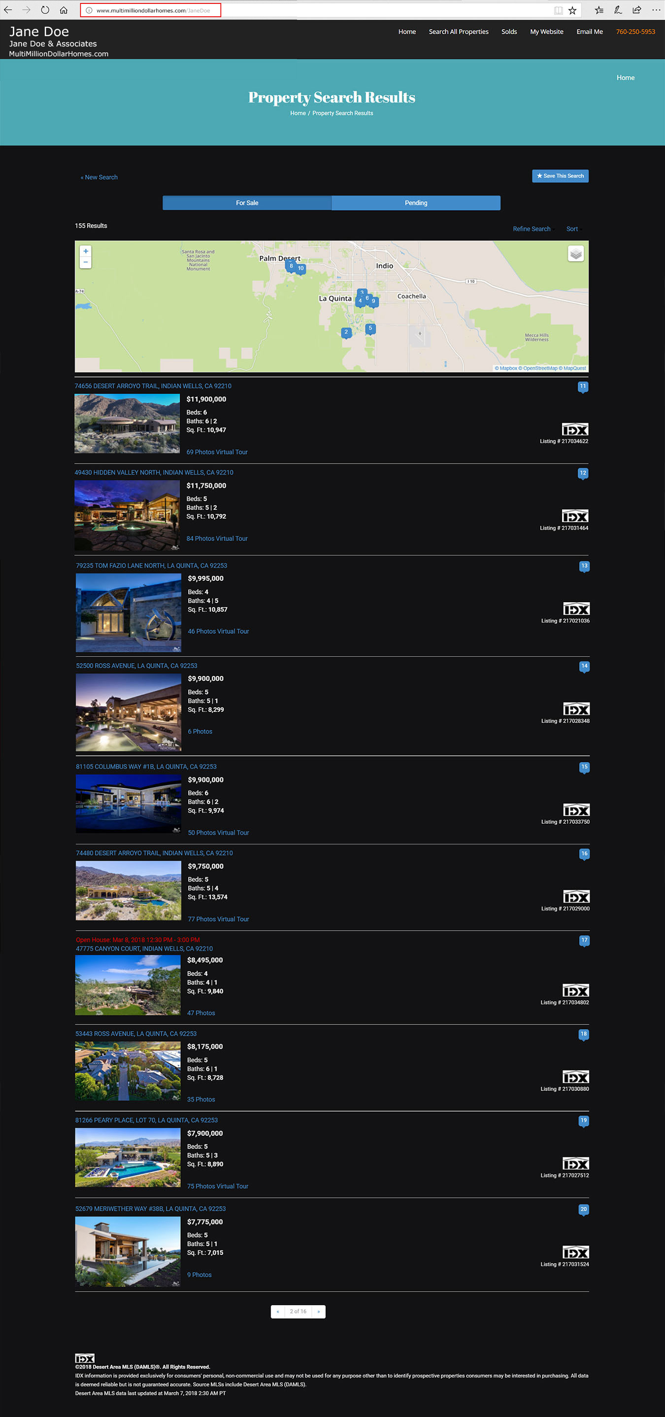 We will build these site pages for you, and your listings will be displayed like the sample URL’s below with your IDX/MLS properties automatically displayed: